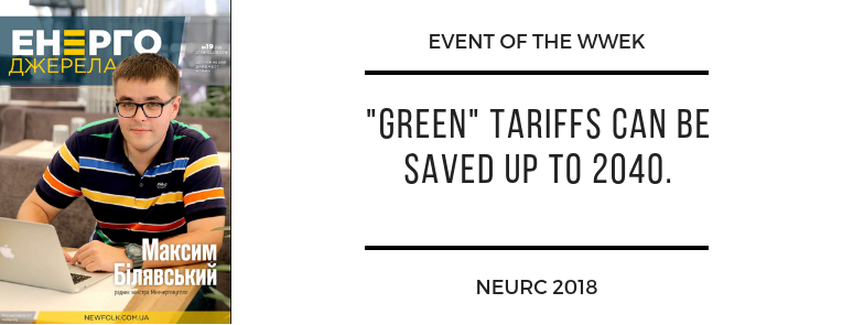 Over EUR 1.1 billion of "green" investments are involved in renewable energy projects. American company Holtec intends to arrange production of small nuclear modular reactors in Ukraine. NEURC may keep in force current "green" tariffs for private households by 2040.